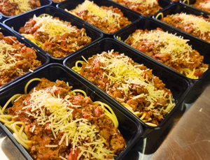 Ingredients: Spaghetti (flour and water), Bolognaise Sauce (beef and pork mince) Crushed Tomato, Beef Stock, Carrot, Onion, Zucchini, Celery, Garlic, Red Wine, Mixed Herbs (oregano, basil, parsley) Salt and Pepper, Parmesan Cheese.