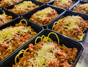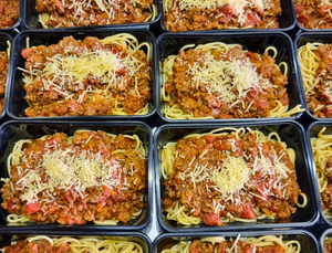 The classic Italian pasta dish, featuring spaghetti tossed in a rich slow cooked meat sauce topped with parmesan cheese.
